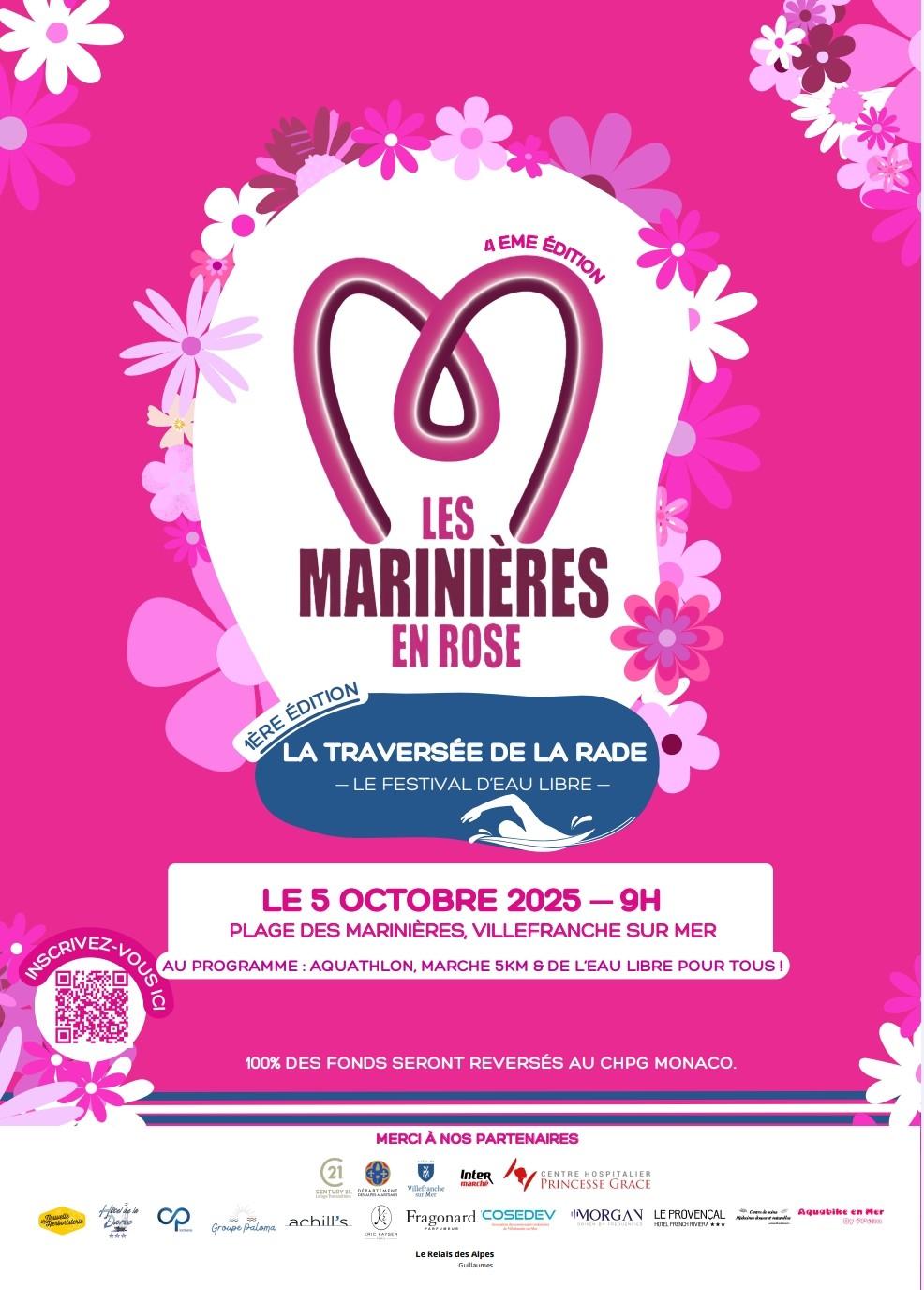 Jour J ! Les Marinières en Rose reviennent à Villefranche sur Mer ce week-end ! On vous attend nombreuses ET nombreux ce Dimanche 5 octobre prochain pour la quatrième édition de cet aquathlon solidaire sur la plage des Marinières.