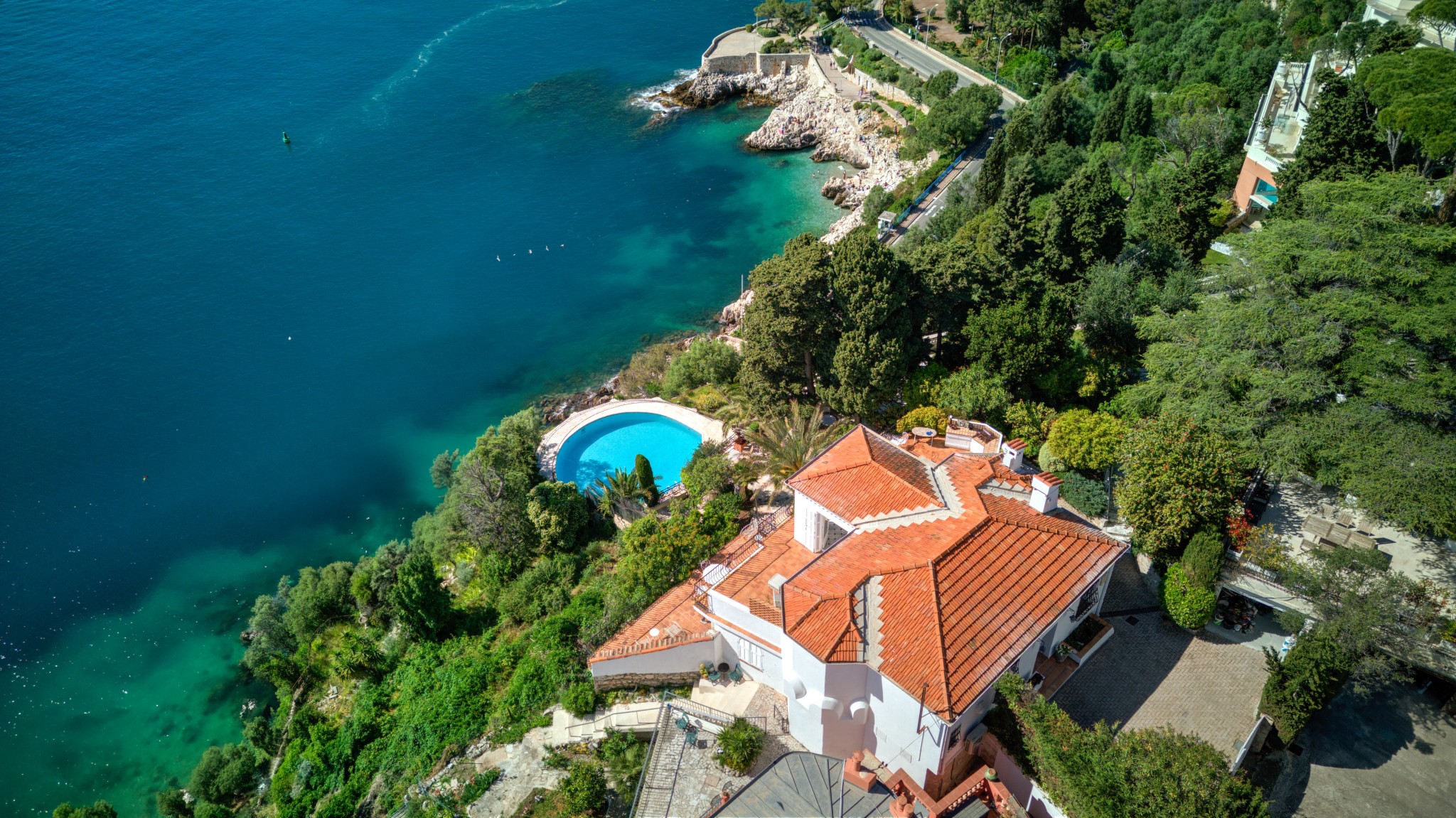 Édifiée sur un terrain de 800 m², la maison offre une superficie de 156 m² sur deux niveaux. Le rez-de-chaussée accueille une vaste entrée, une cuisine indépendante et un spacieux et lumineux séjour de plus de 50 m² ouvert sur une grande terrasse offrant une vue panoramique exceptionnelle sur la Baie des Anges et le port de Nice.
