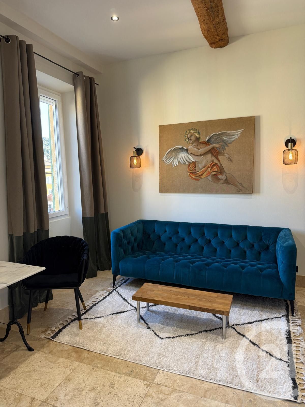 Joli studio meublé avec mezzanine, situé au 4ème et dernier étage sans ascenseur, entièrement rénové avec gout et climatisé, disponible en location longue durée, libre immédiatement.